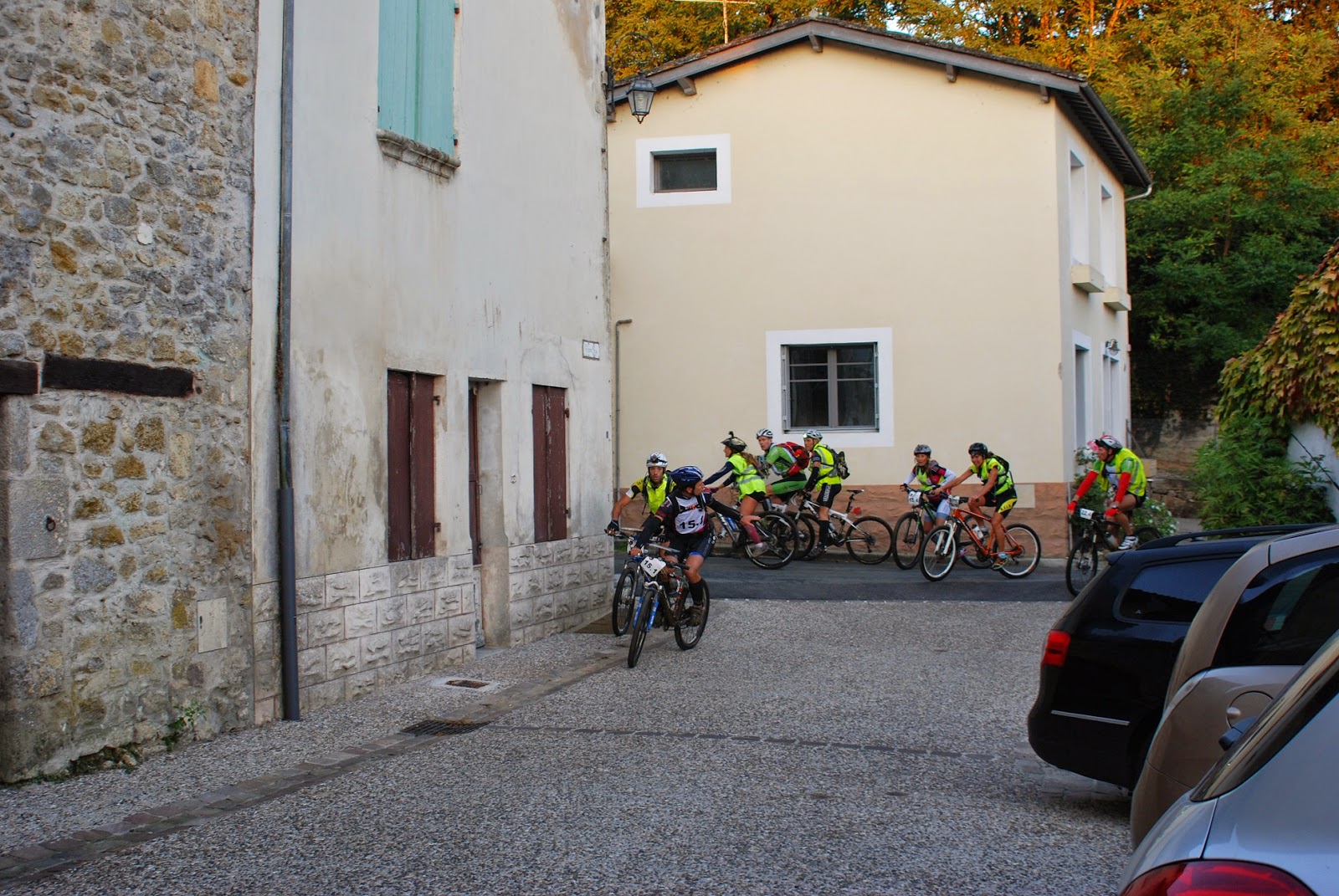 Je me l’enquille avec Eric pendant que Sandrine et Denis se restaurent. Ca s’emballe dans les chemins du plus petit village de France. Ca se croise, se frôle, se chambre. Dans la dernière montée de ruelles nous motivons « à l’envers » (avec Manel des Naka) les autres concurrents.
